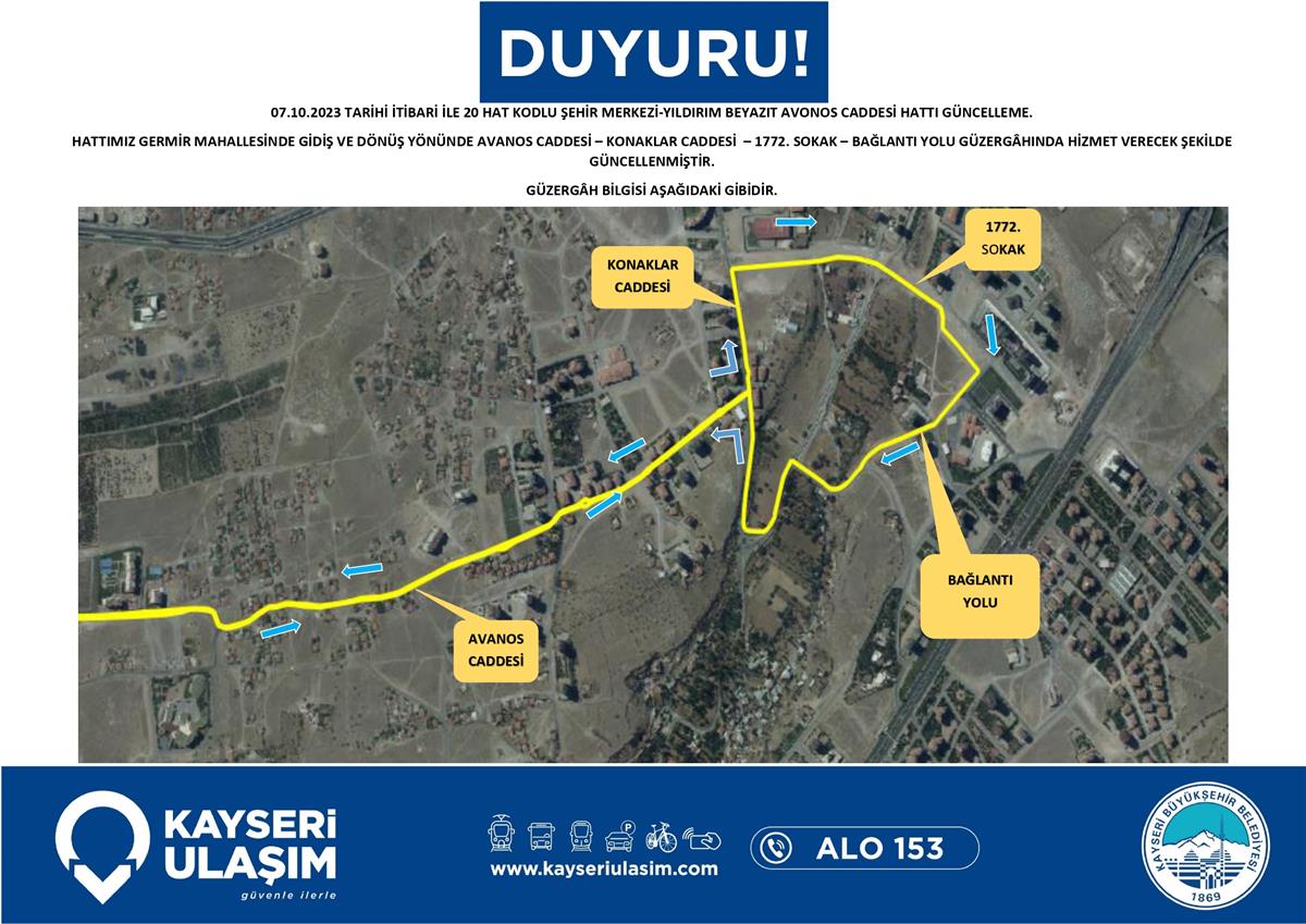 ŞEHİR MERKEZİ-YILDIRIM BEYAZIT AVONOS CADDESİ HATTI GÜNCELLEME