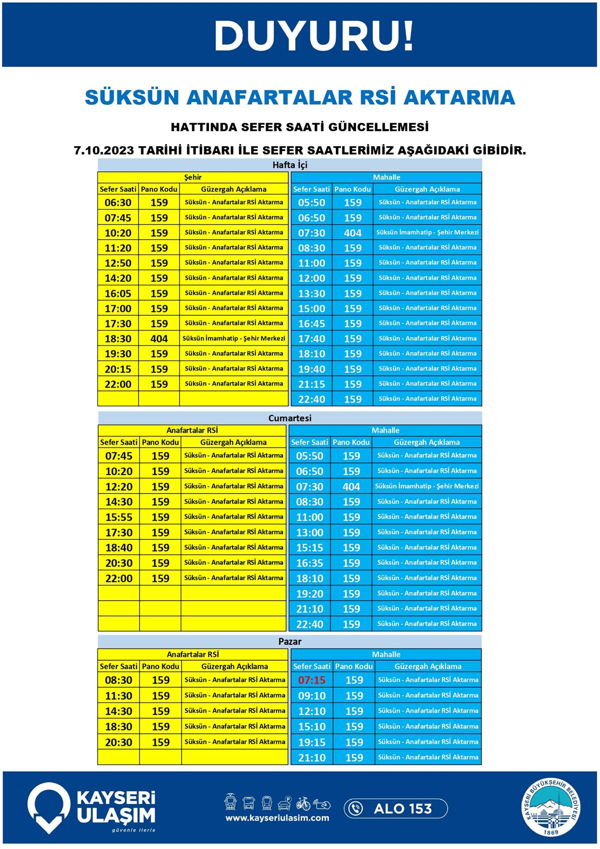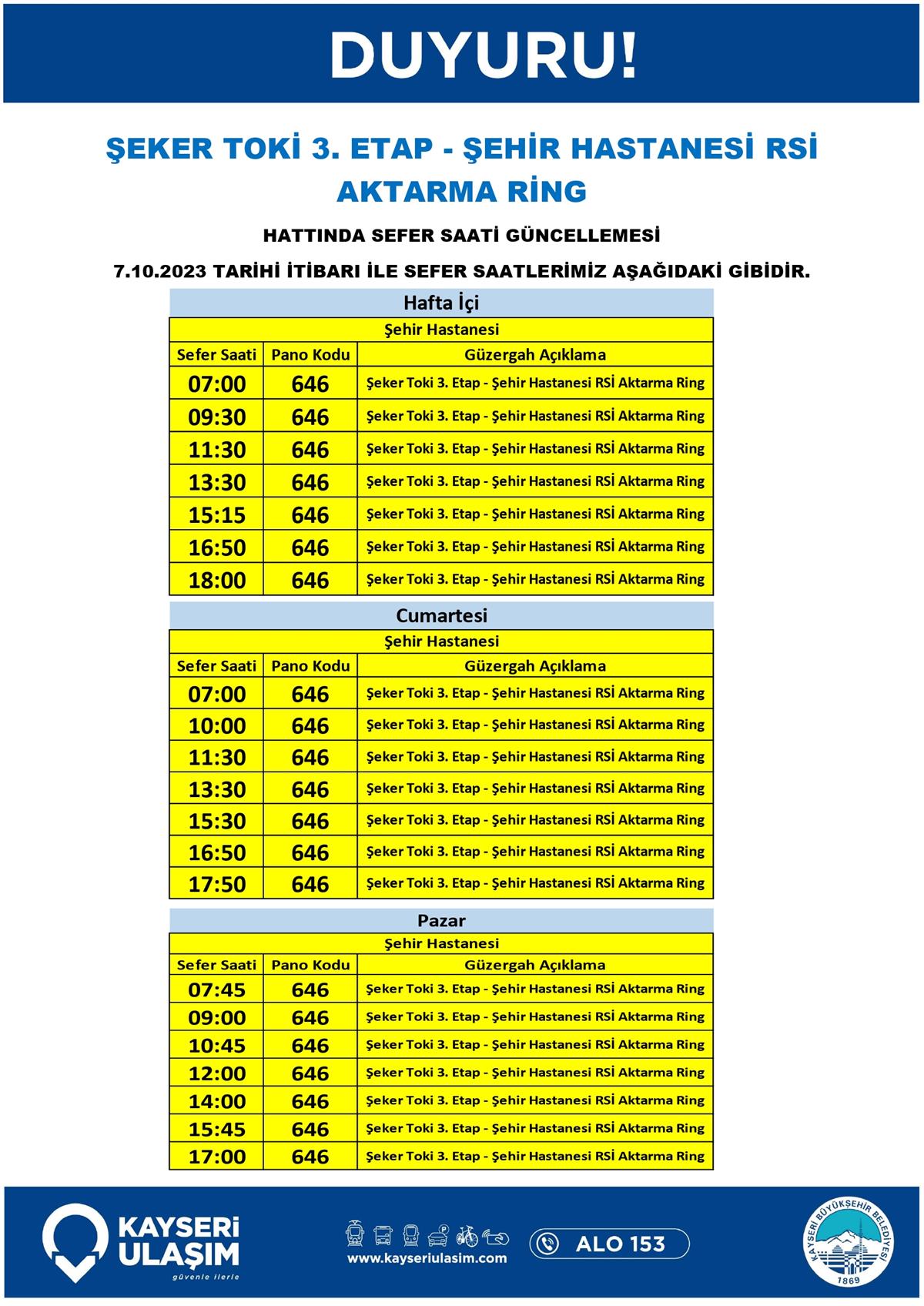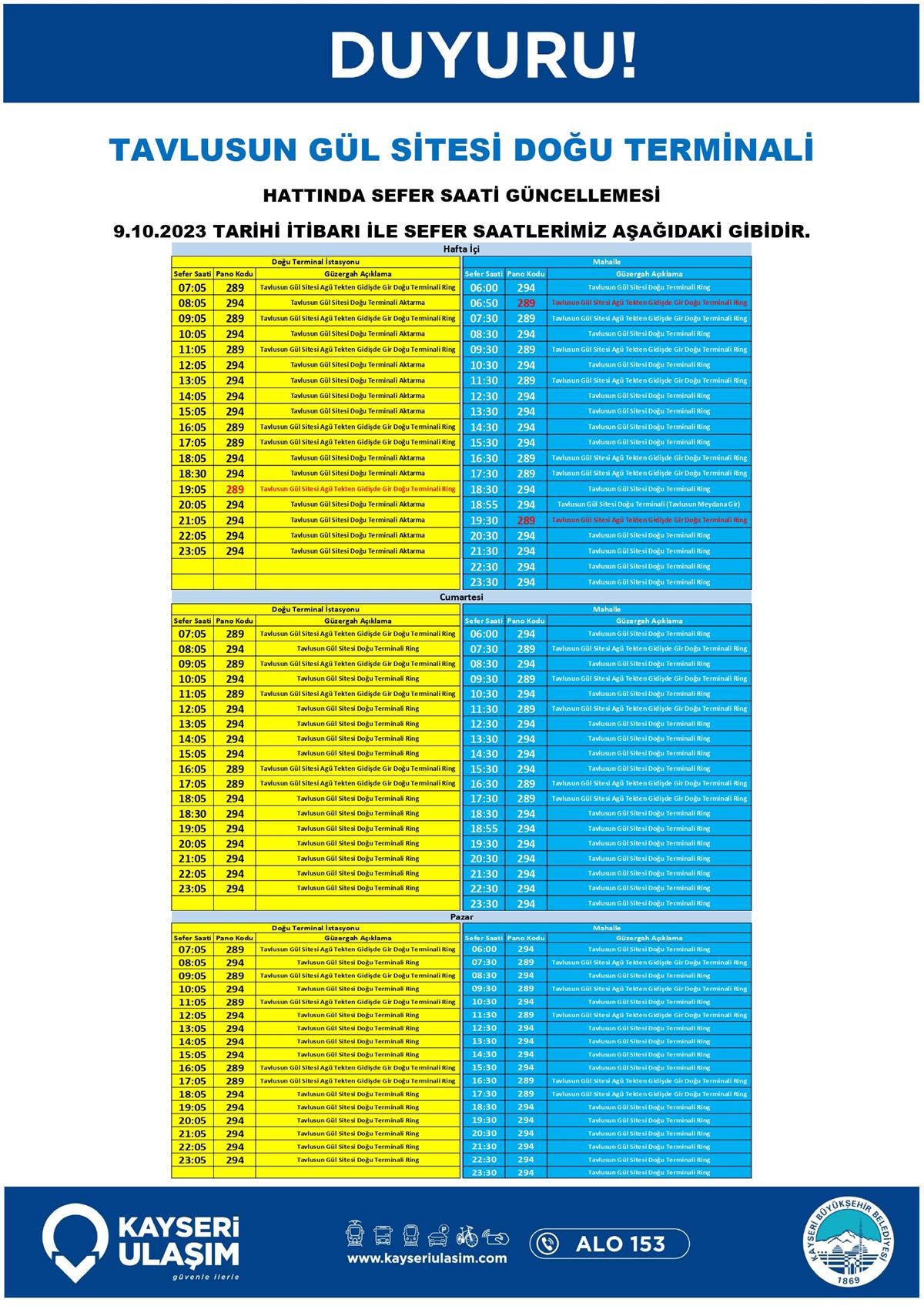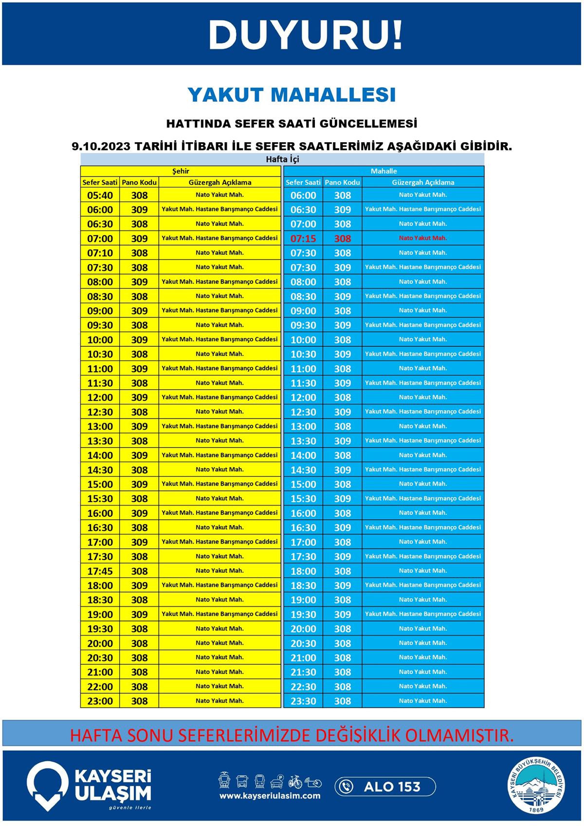 07 – 09 Ekim 2023 Tarihi İtibari İle Bazı Sefer Saat ve Güzergah Güncellemeleri Yapılmıştır.