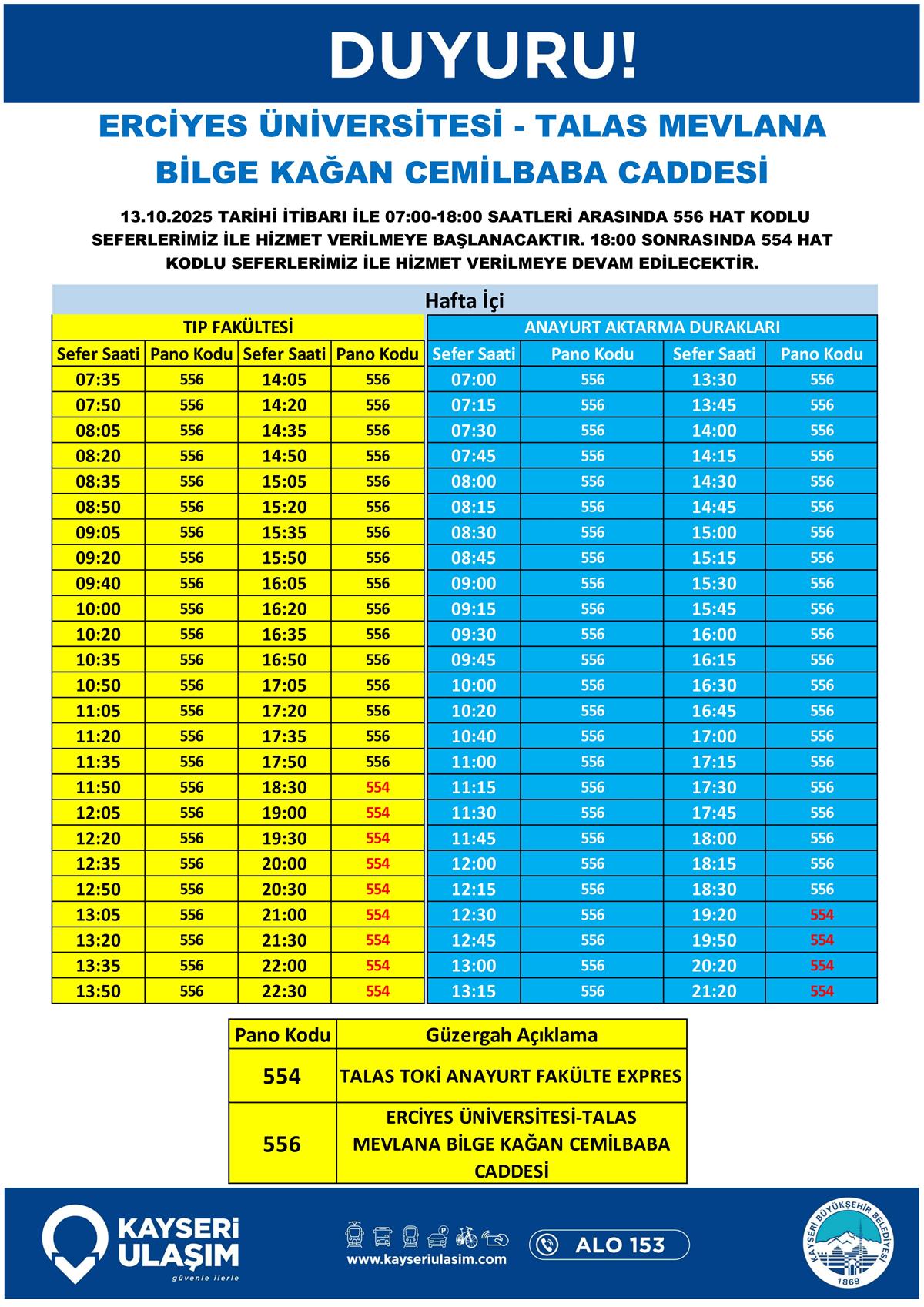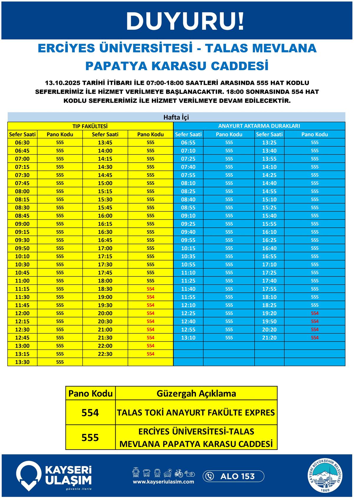 Ulaşım hizmetimizi daha konforlu hale getirmek amacıyla 554 no lu hattımızda güncelleme yapılmış olup, bu hattın bölgesinde hizmet verecek olan 555 ve 556 no lu iki yeni hat oluşturulmuştur. Detaylar için: aşağıdaki görselleri inceleyebilirsiniz.