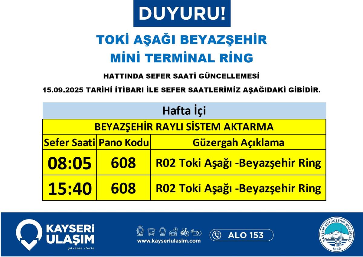 TOKİ AŞAĞI BEYAZŞEHİR MİNİ TERMİNAL RİNG HATTINDA SEFER SAATİ GÜNCELLEMESİ