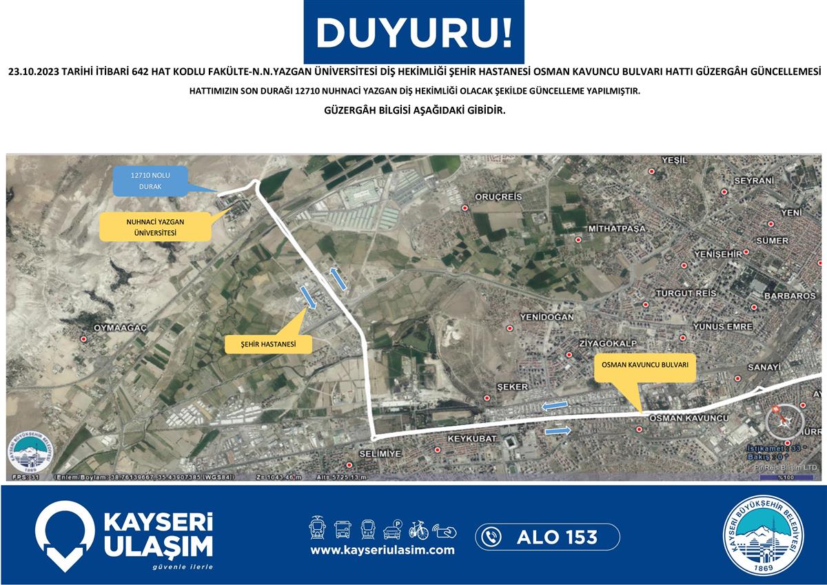 N.N.YAZGAN ÜNİVERSİTESİ DİŞ HEKİMLİĞİ ŞEHİR HASTANESİ OSMAN KAVUNCU BULVARI EMMİLER KEMER TAŞHAN - YEŞİL MAHALLE MİNİ TERMİNAL AKTARMA