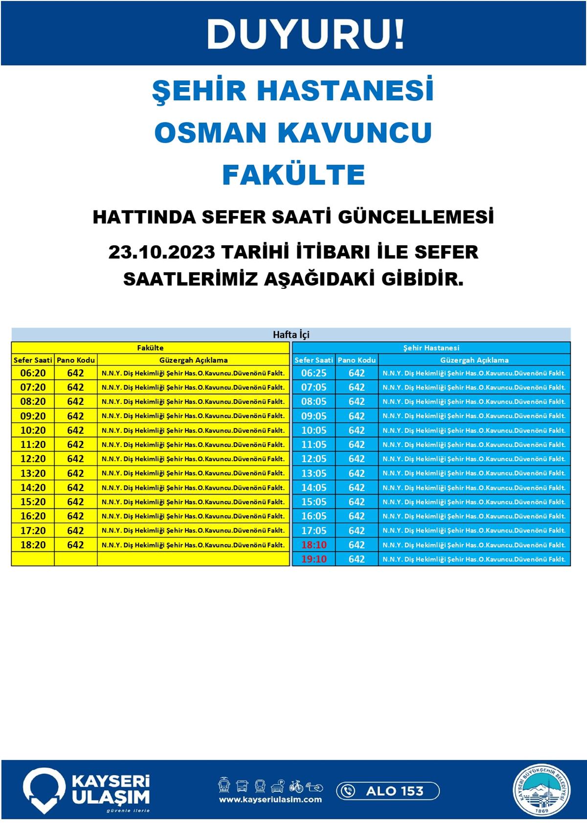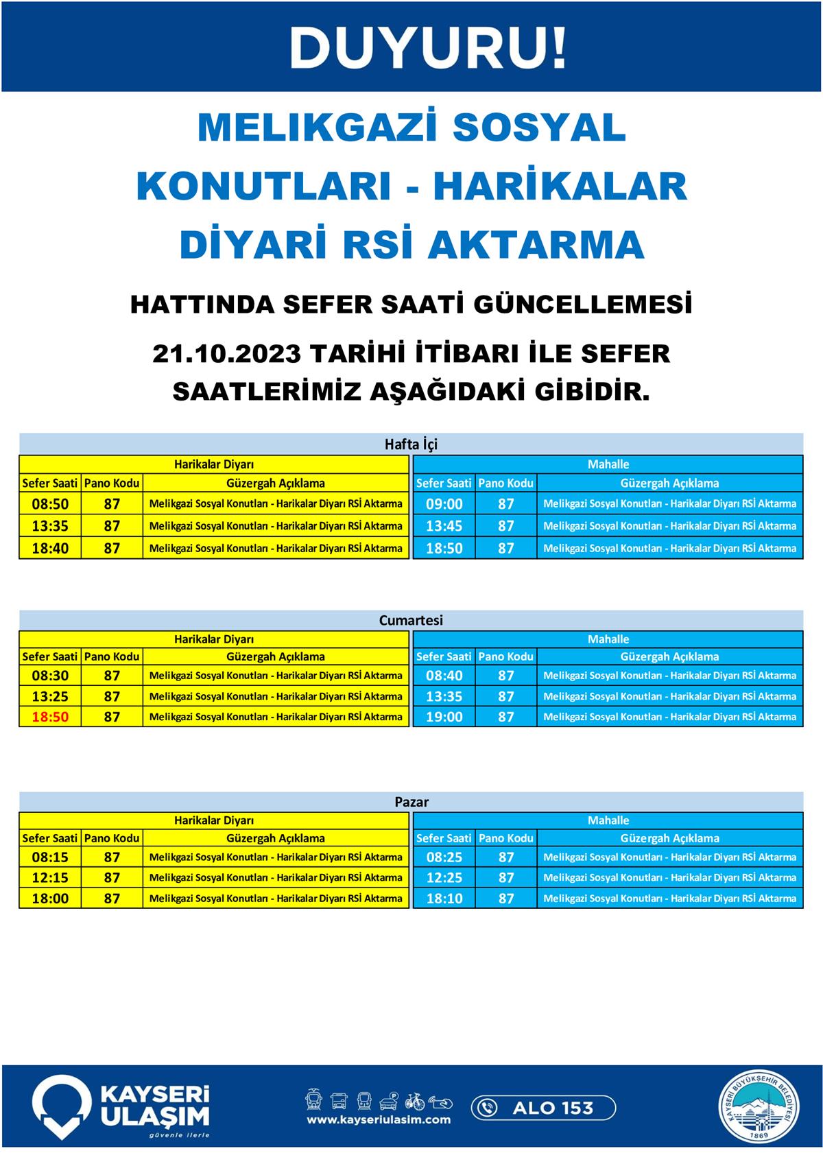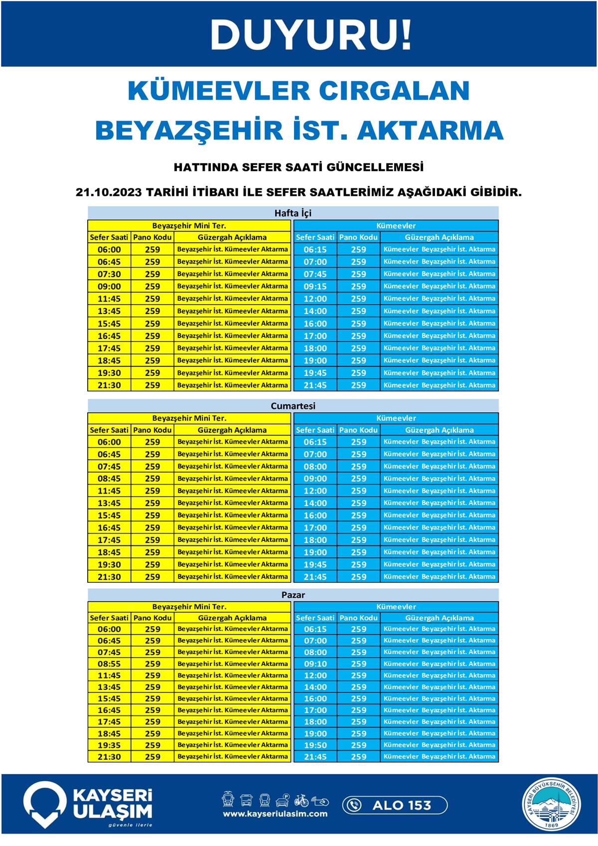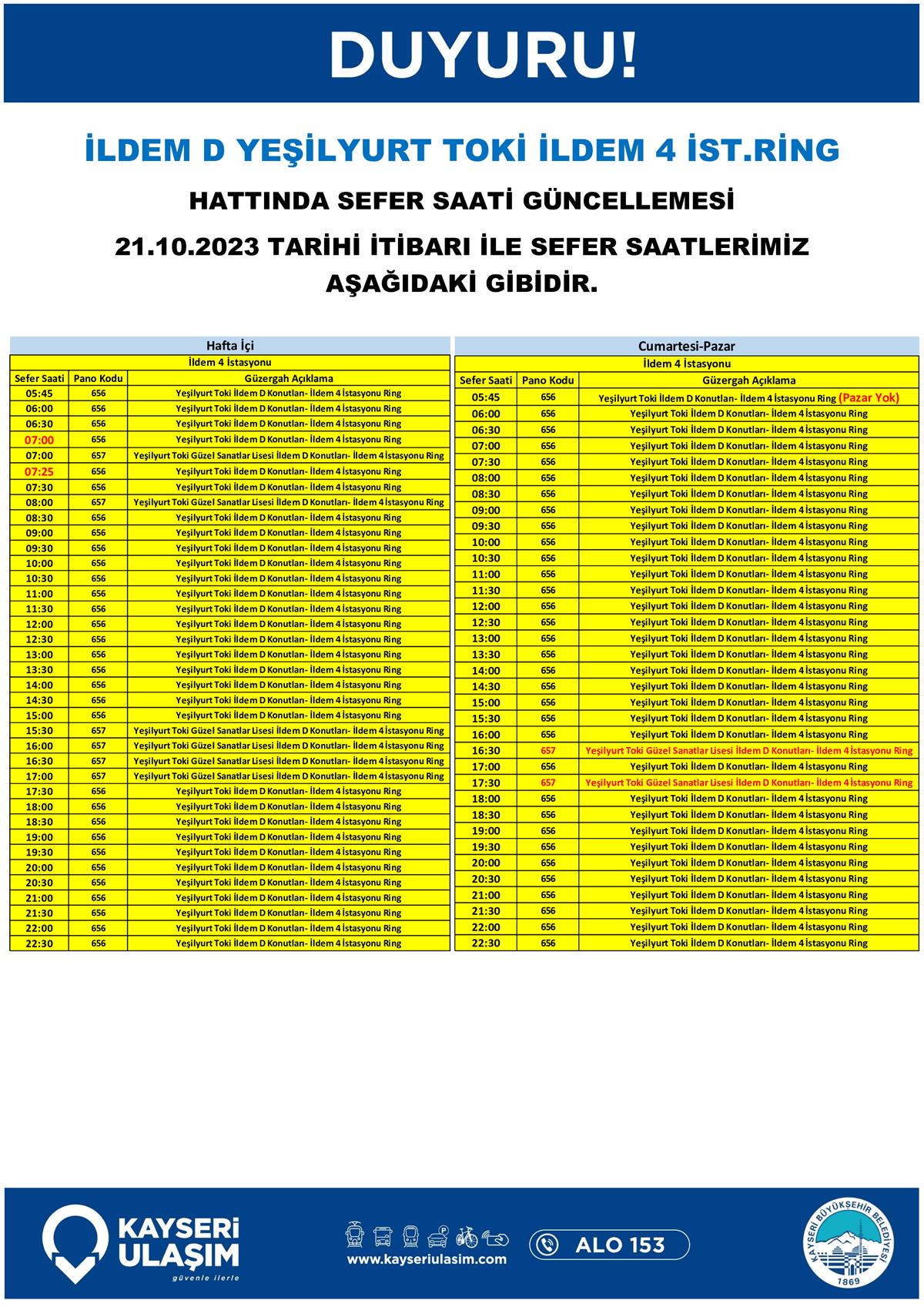 21 – 23 Ekim 2023 Tarihinden İtibaren Bazı Sefer Saat ve Güzergah Güncellemeleri Yapılmıştır.