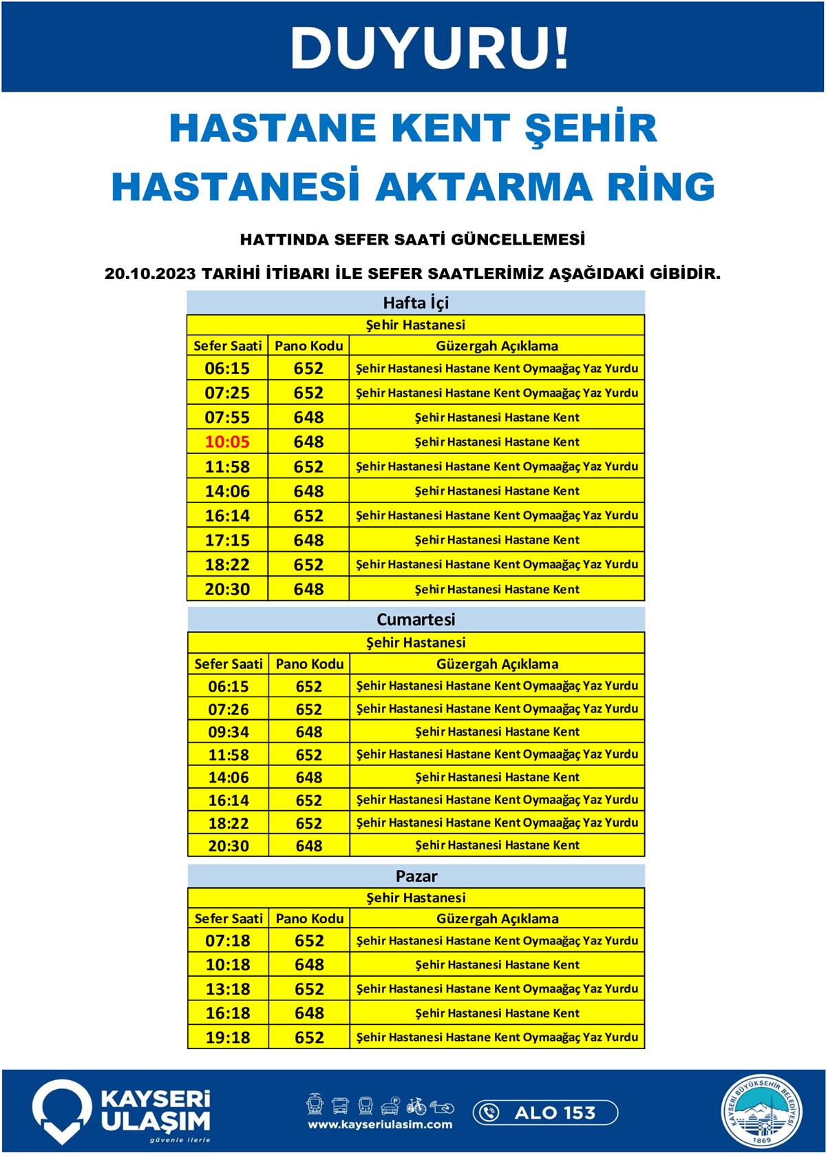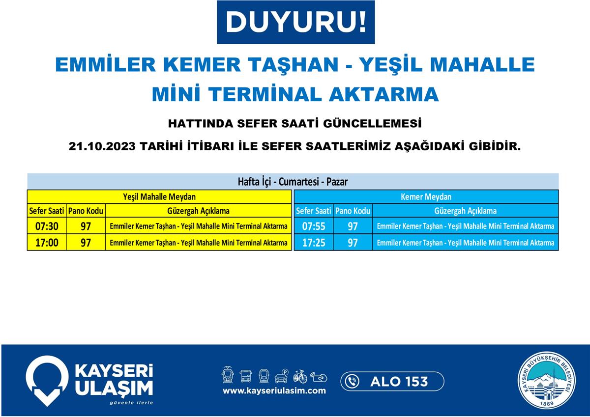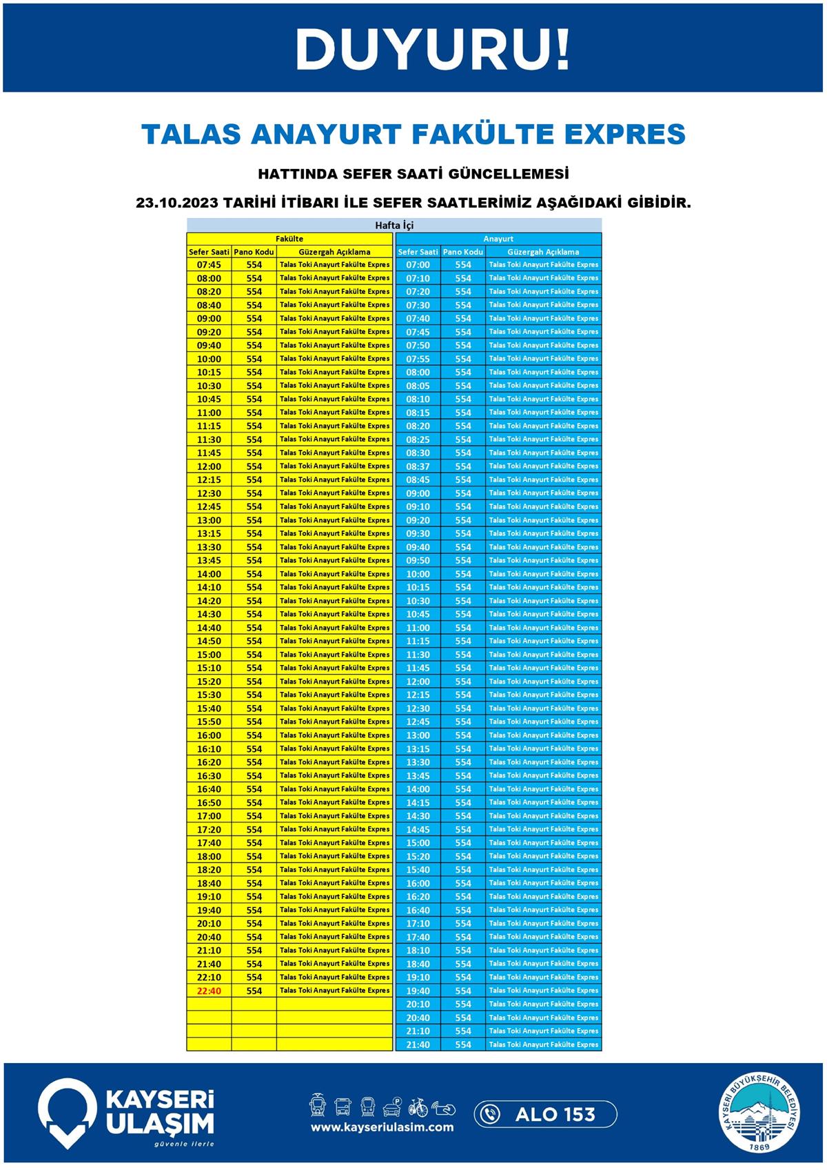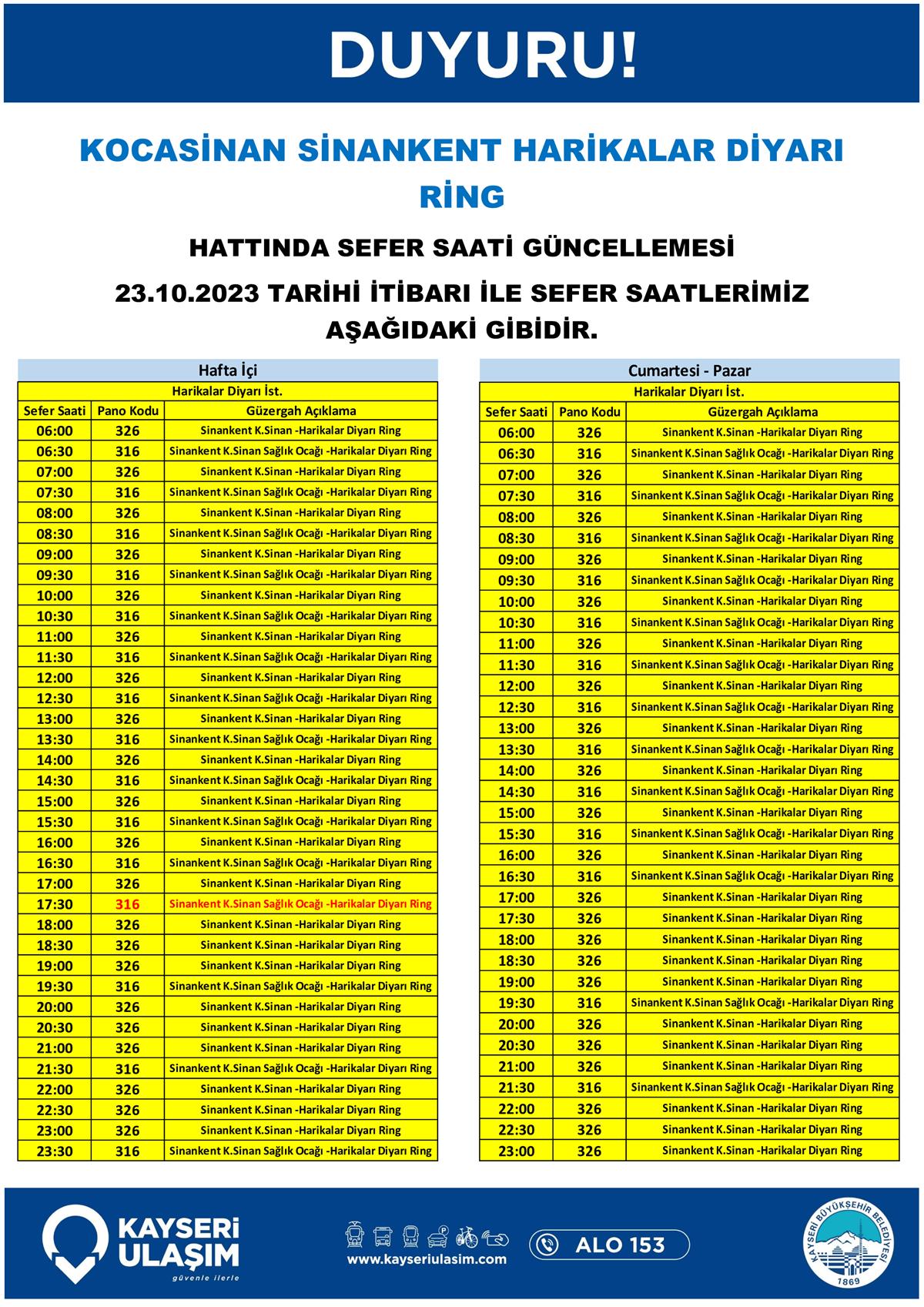 21 – 23 Ekim 2023 Tarihinden İtibaren Bazı Sefer Saat ve Güzergah Güncellemeleri Yapılmıştır.
