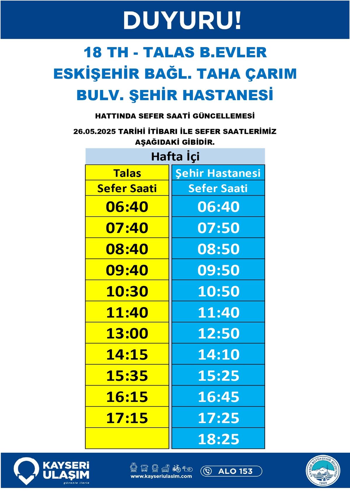 18 TH - TALAS B.EVLER ESKİŞEHİR BAĞL. TAHA ÇARIM BULV. ŞEHİR HASTANESİ