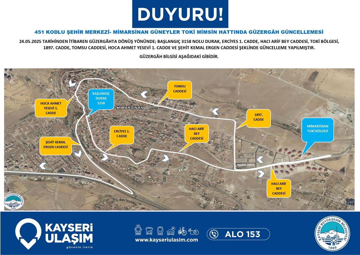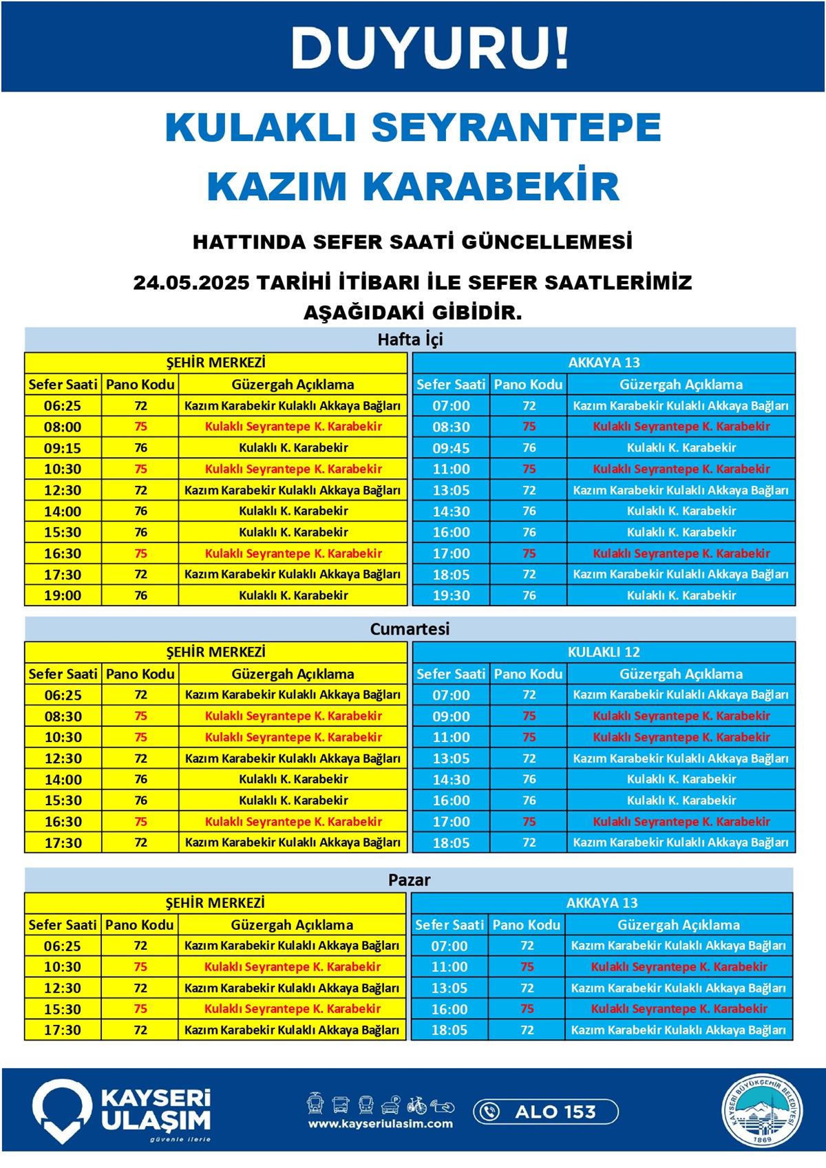 24 Mayıs 2025 Tarihinden itibaren Bazı Sefer Saat ve Güzergah Güncellemeleri Yapılmıştır.