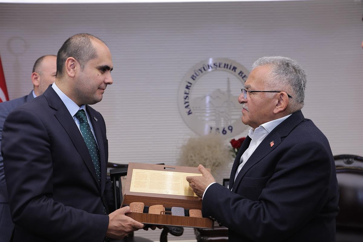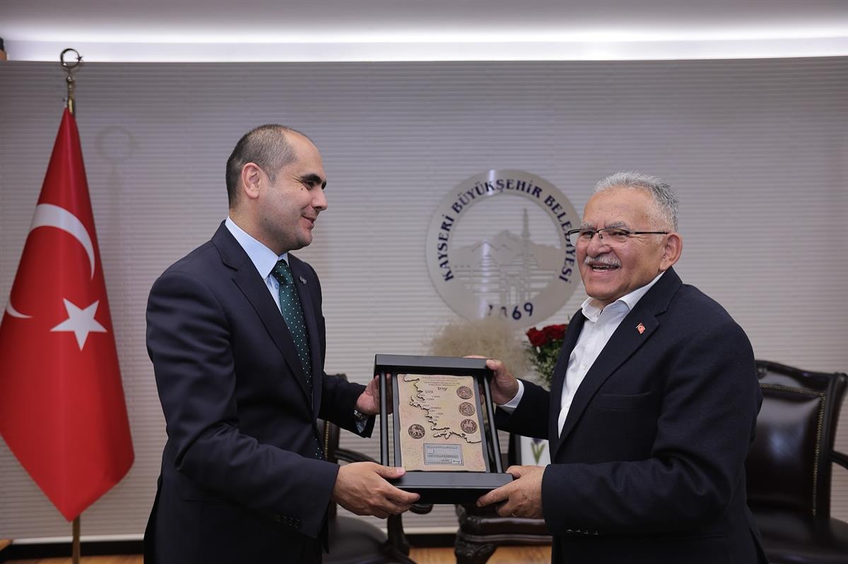 Büyükkılıç, BKM Genel Müdürü Deniz’e Büyükşehir Belediyesi’nin kültür yayını olan Erciyes Dağı kitabını hediye etti.