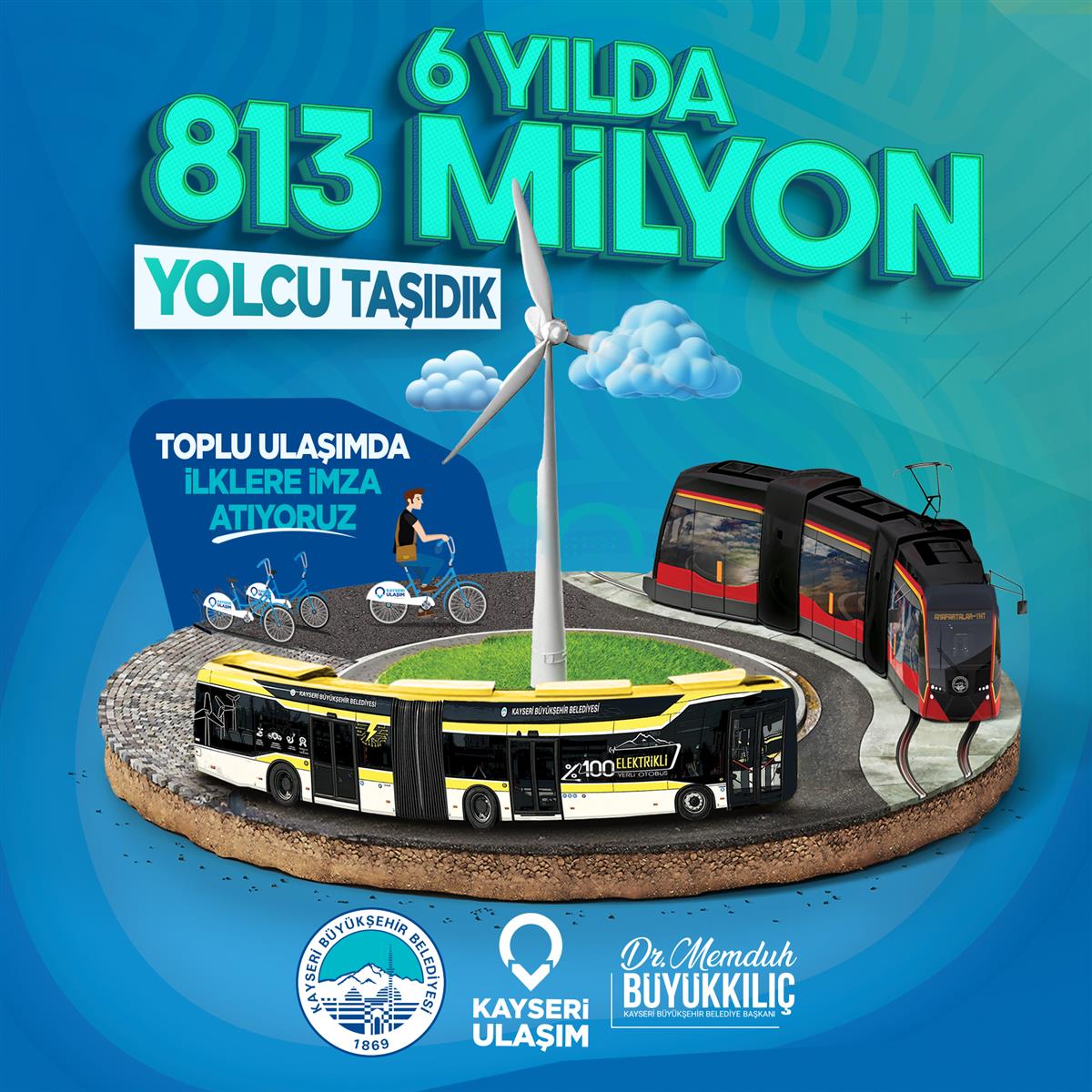 Raylı Sistem Hatları ve tramvay araçlarının yanında içerisinde elektrikli otobüslerinden yer aldığı güçlü otobüs filosu ile Kayserililere güvenli, konforlu ve hızlı bir ulaşım hizmeti veren Büyükşehir Belediyesi Ulaşım A.Ş., 6 yıllık süreçte raylı sistem hatlarında 243 milyon 163 bin 696, otobüs hatlarında ise 569 milyon 986 bin 222 yolcu olmak üzere toplam 813 milyon 149 bin 918 yolcuya hizmet verdi.