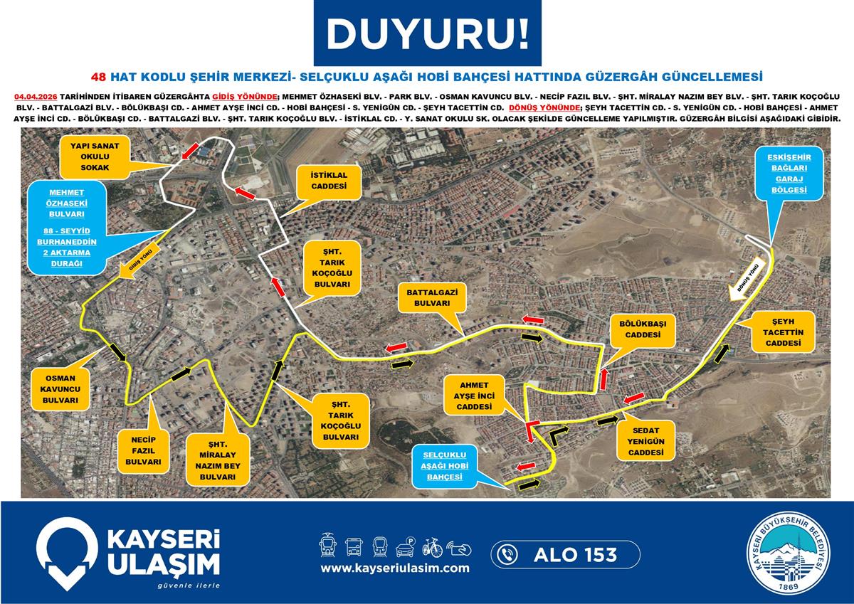 48 HAT KODLU ŞEHİR MERKEZİ- SELÇUKLU AŞAĞI HOBİ BAHÇESİ HATTINDA GÜZERGÂH GÜNCELLEMESİ