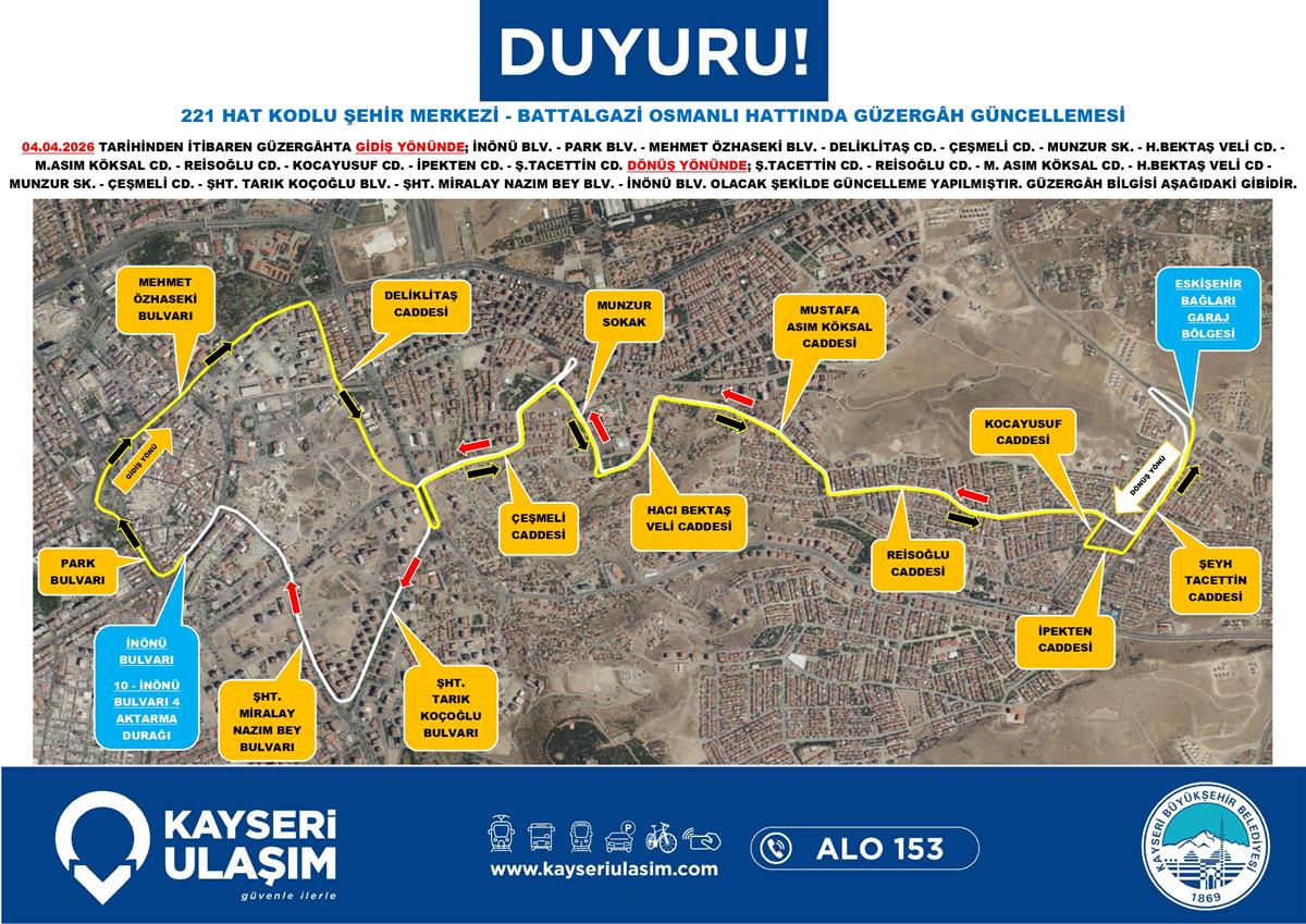 221 HAT KODLU ŞEHİR MERKEZİ - BATTALGAZİ OSMANLI HATTINDA GÜZERGÂH GÜNCELLEMESİ