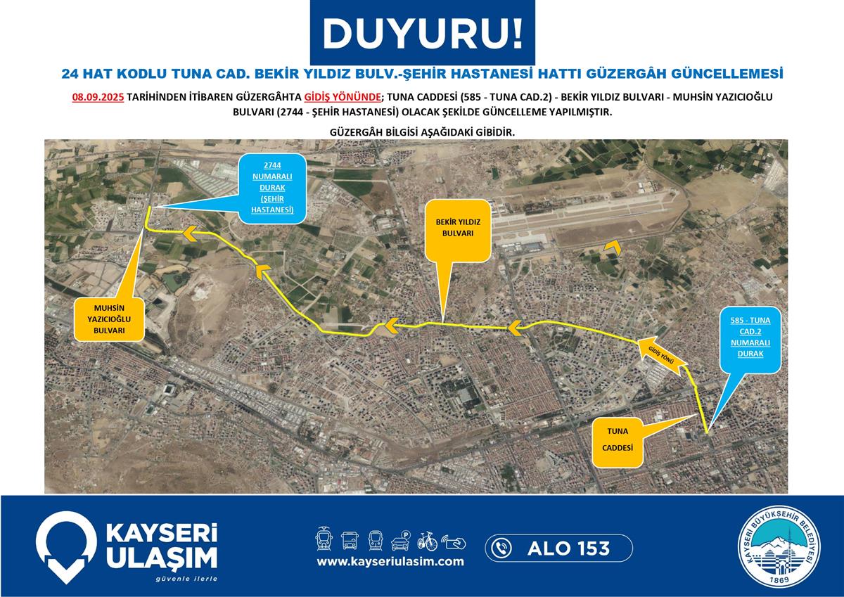 TUNA CAD. BEKİR YILDIZ BULV.-ŞEHİR HASTANESİ HATTI GÜZERGÂH GÜNCELLEMESİ