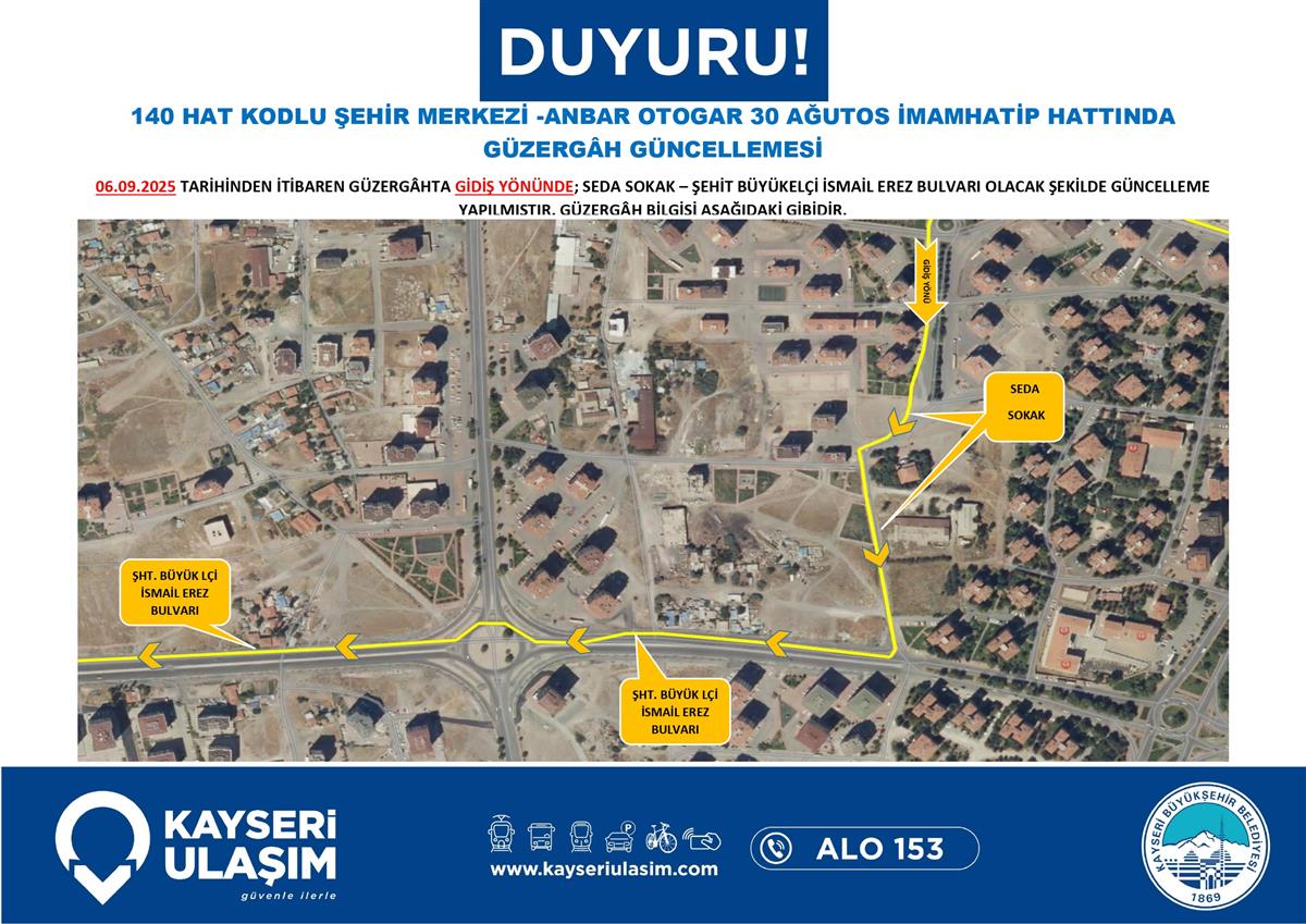 06 Eylül 2025 Tarihinden itibaren Bazı Güzergâh Güncellemeleri Yapılmıştır.