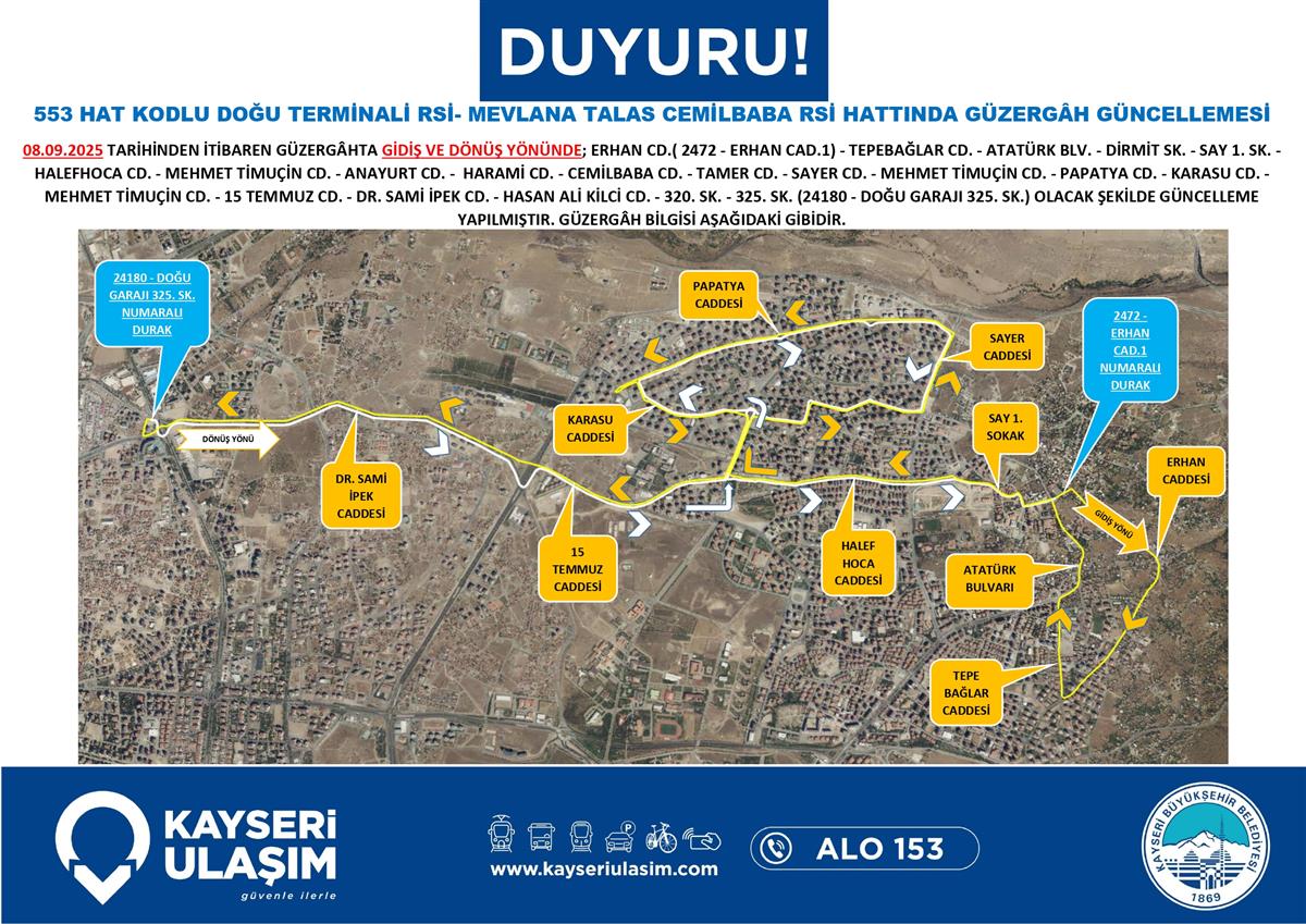 DOĞU TERMİNALİ RSİ- MEVLANA TALAS CEMİLBABA RSİ HATTINDA GÜZERGÂH GÜNCELLEMESİ