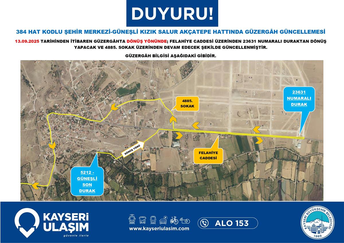 13 Eylül 2025 Tarihinden itibaren Bazı Sefer Saat ve Güzergâh Güncellemeleri Yapılmıştır.