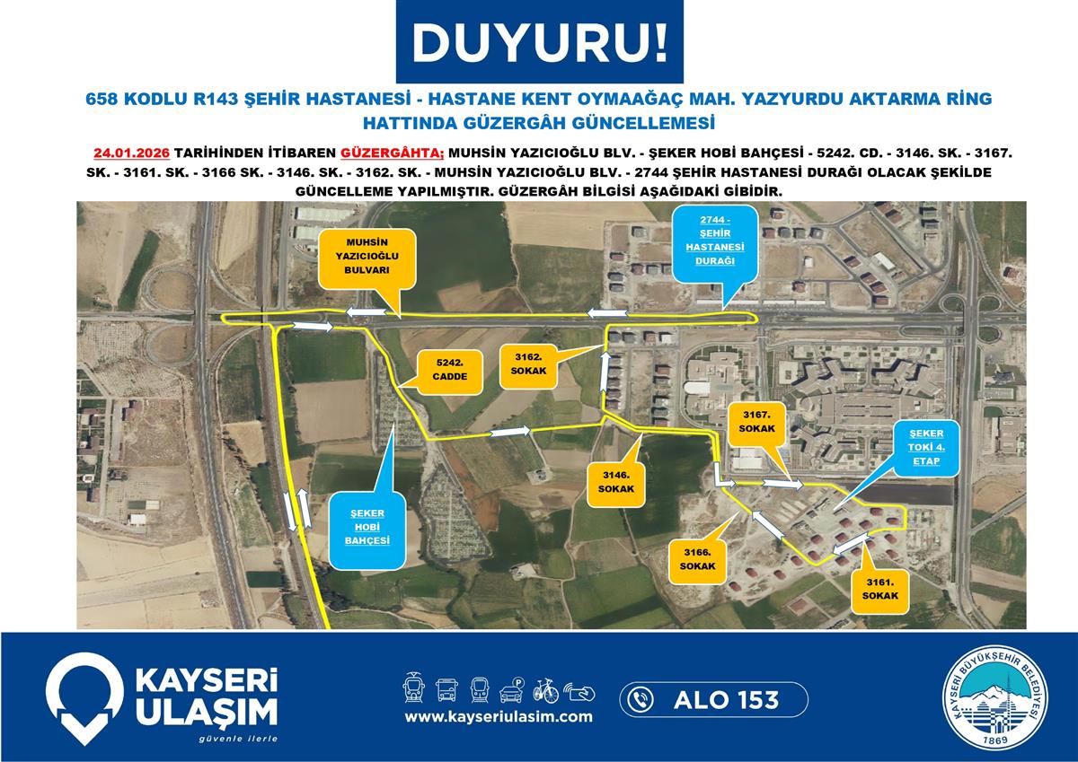 ŞEHİR HASTANESİ - HASTANE KENT OYMAAĞAÇ MAH. YAZYURDU AKTARMA RİNG HATTINDA GÜZERGÂH GÜNCELLEMESİ